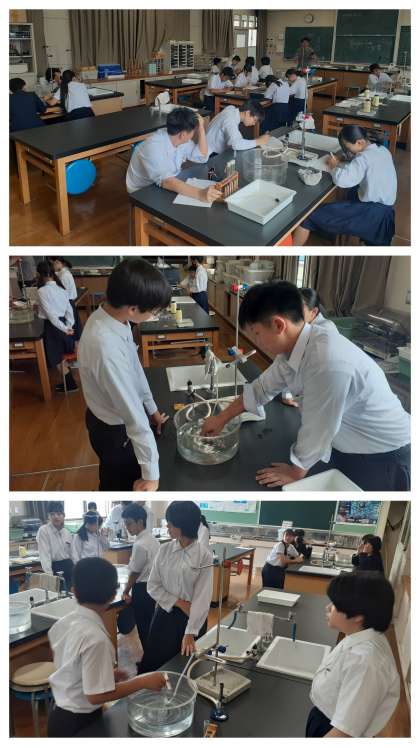 今日の実験では、現象を観察するのみで時間が来てしまい、結果の考察は、次回の授業時となるようです。