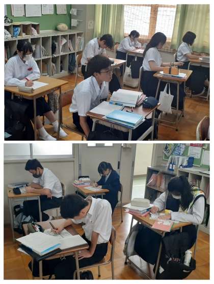 4時間目のプール学習、給食、そしてこの6時間目の授業とあって、少々、お疲れ気味の生徒さんもいましたが、次回からの本題に入る前に。きっちりと復習ができました。