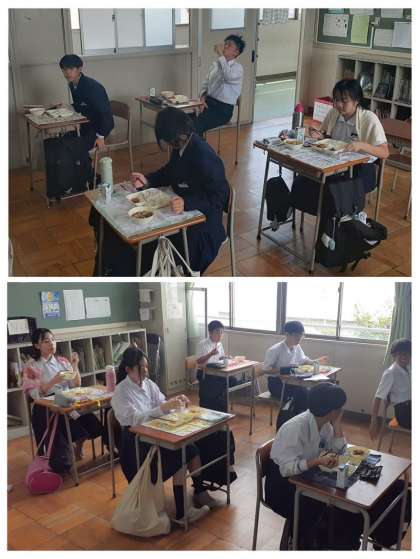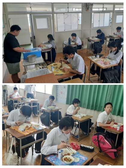 オクラのおかか炒めは、2〜3センチほどにカットして炒めたオクラに、みりんとしょうゆで味付けし、たっぷりのかつおぶしで和えられていました。お替りの手がたくさん上がっていました。