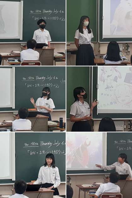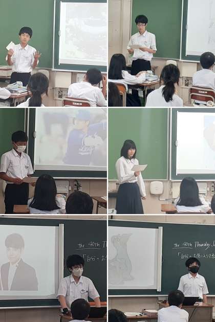 の5点です。生徒は、緊張しながらも、大きな声で元気よく、ジェスチャーも加えて発表を頑張っていました。(全員の写真が無くてすいません)