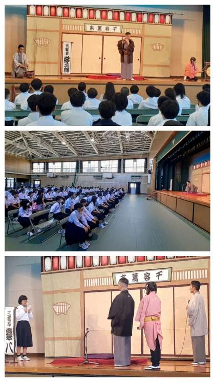 今年は「古典芸能」で、柴島中学校では「演劇」「音楽・パフォーマンス」の3つをローテーションで回しています。