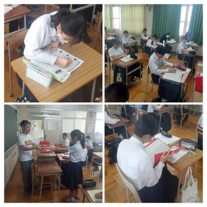 夏休みのしおりが配られ、部活動の予定表を確認し、夏休みの予定表を記入したり、1学期の反省から目標を立てたりしました。