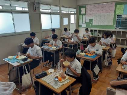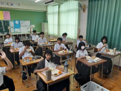 また、2学期より牛乳のパッケージに大阪・関西万博のイメージキャラクター「ミャクミャク」が描かれたものが使われています。開催まで、今日で、あと229日だそうです。