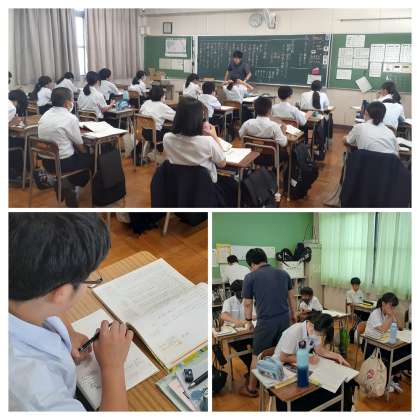 この授業は、5月からの継続で今回で3回目、先生方の指導力の向上および生徒の学力向上を目的とした「学力向上支援チーム事業」として、大阪市総合教育センターのSA(スクールアドバイザー)の先生に年間を通して授業を見ていただき、授業後にご指導していただきました。