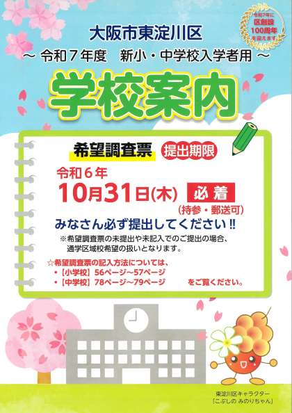 東淀川区学校選択制における「学校公開」のお知らせ(9月5日)