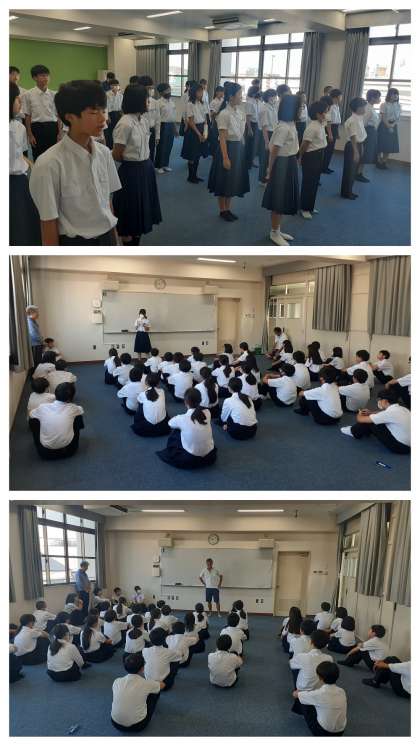 先生からは、あと2週間後に迫った、柴中フェスタの歴史、1年生として初めての取組だが、来年、再来年へと先輩になってつなげていくこと、スポーツ発表の部では勝敗が付いてしまうけど、だれかを責めるわけではなく、みんなが気持ちよく行事を行い、成長していくことがフェスタの目的であること、20日に向かって、体調も心もピークとなるように調整ができるようにしてほしい、などのお話がありました。