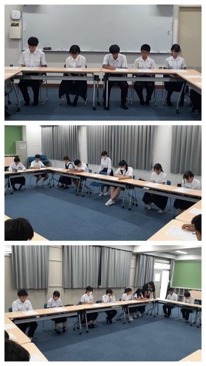 まずは、先日に行われた各委員会の報告で、先月の反省と今月の目標を伝えてもらいました。その後、生徒議会への提案ごとは無いかの確認(→ありませんでした)がありました。