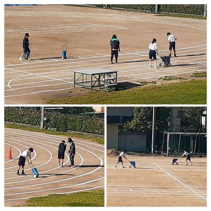 フェスタ・スポーツ発表の部に向けて、日々、練習を重ねているところですが、使用すると、当然のことながら、グランドは乱れ、ラインは消えていきます。