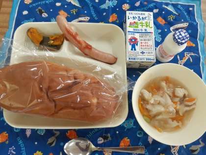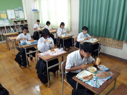 ウインナーのケチャップソースは、15cmほどの長さで、焼きではなく、湯がいてありました。ケチャップ、とんかつソース、ウスターソースのブレンドソースで絡められていました。おさつパンに挟んで「ホットドッグ」にしている生徒もいました。