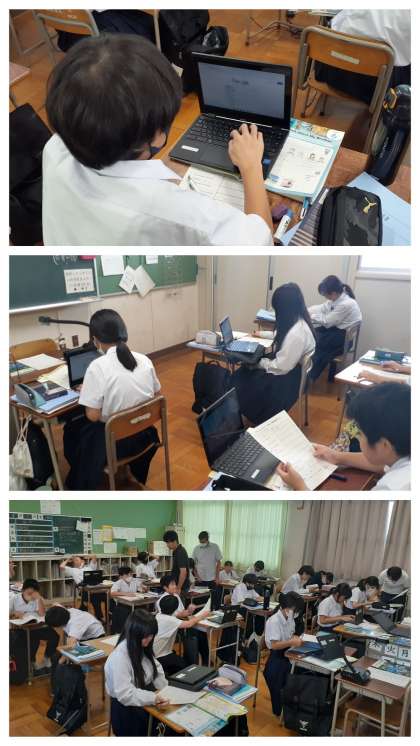 1年生の英語の学習の様子です。1年生でも2年生に引き続き、C−NETの先生とのスピーキングテストがあるようです。フェスタもあるので、再来週くらいになるのかな?