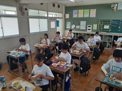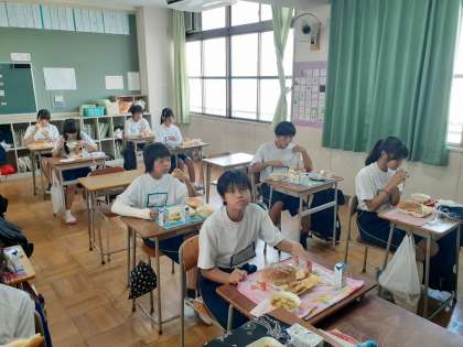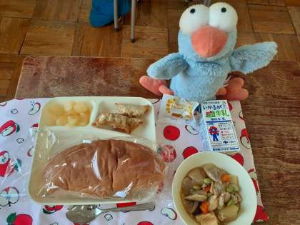 揚げギョーザは、一般的な冷凍の肉ギョーザを菜種油で揚げたものです。一人3個の配膳でしたが、たくさんの生徒がお替りの手を挙げていました。