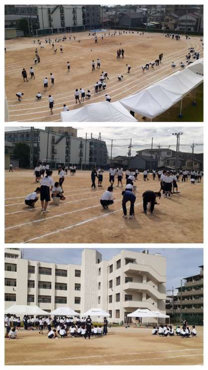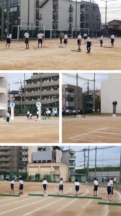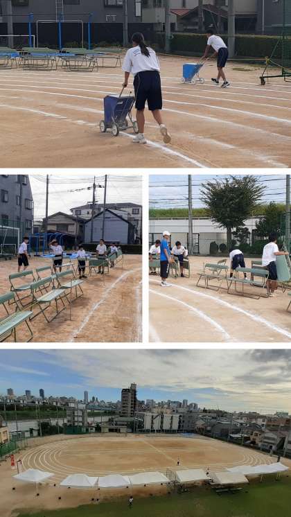 まずは、全員でグランドの石拾いからです。その後、各担当に分かれ、先生の指示に従って、手際よく準備が整っていきました。