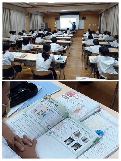1年生の保健の学習の様子です。「心身の機能の発達と心の健康」という単元で、今日は「体の発育・発達」について学習しました。