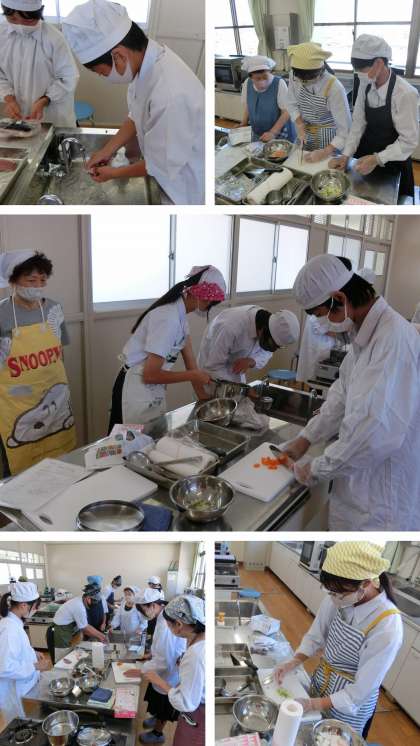 2年生家庭科の調理実習の様子です。今日の実習は2年1組Aでした。Bは来週に予定しています。