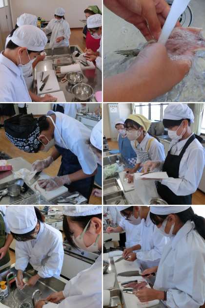 2年生家庭科 上手く魚がさばけたかな? その1(9月26日)