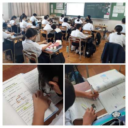 2学期に入り、1時間の学習量も、ペースもかなり早くなってきています。先生の説明を集中して聞き、遅れないようにポイントをマーカーや色ペンも屈指して記入していました。