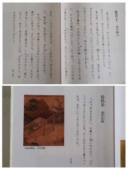 枕草子は、「春と夏」、「秋」、「冬」の3つに分けて、徒然草は1つ、計4つのパートでの暗唱テストです。