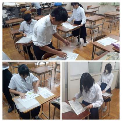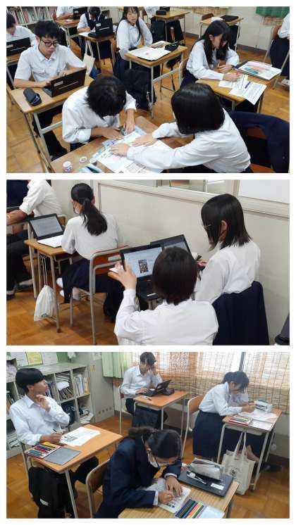 久しぶりにクラウド上のデータをダウンロードし、最終調整、文の校正などを行い、印刷しました。印刷後はさらに色ペンや色鉛筆でカラフルにする生徒もいました。