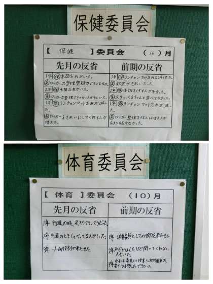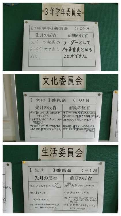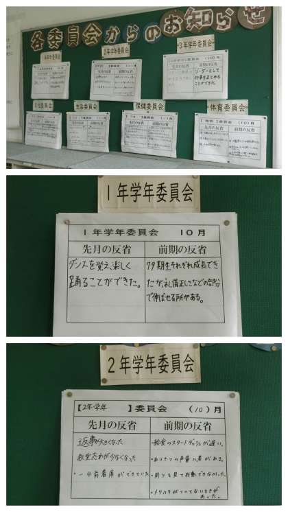 金曜日に行われました、前期最後の生徒各委員会の報告が掲示板に貼りだされました。