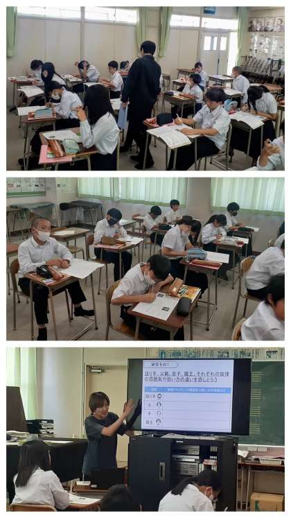 生徒は、登場人物ごとに繰り返して音源を聴き、それぞれの旋律の雰囲気、歌い方の特徴や違いをプリントに記していました。