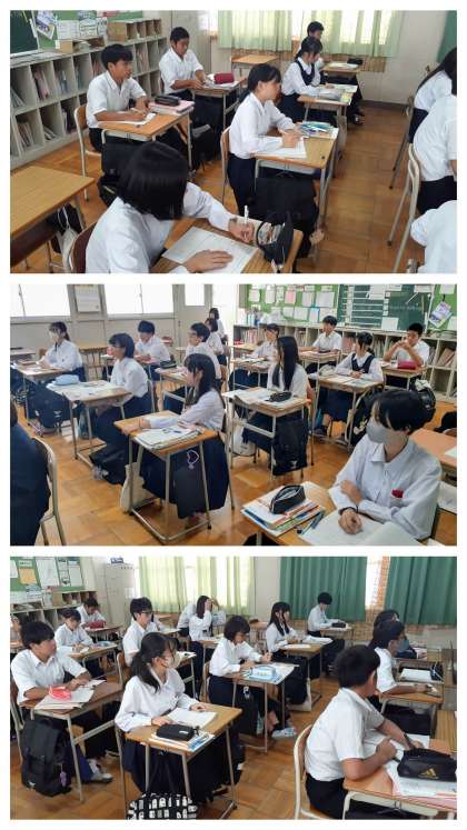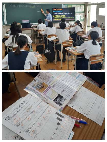 3年生の社会科の学習の様子です。「公民」の分野で、タイムリーにも「選挙」に関連する学習でした。プリントのタイトルも「政治参加」となっていました。