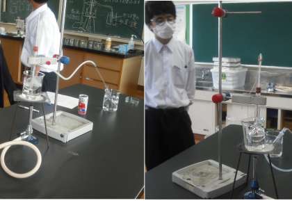 実験装置では、各器具の位置や使い方の注意点がたくさんありました。また、ガスバーナーの使い方も確認しました。しっかり覚えてほしいですね。