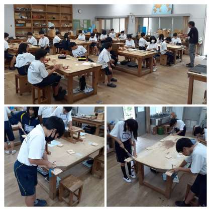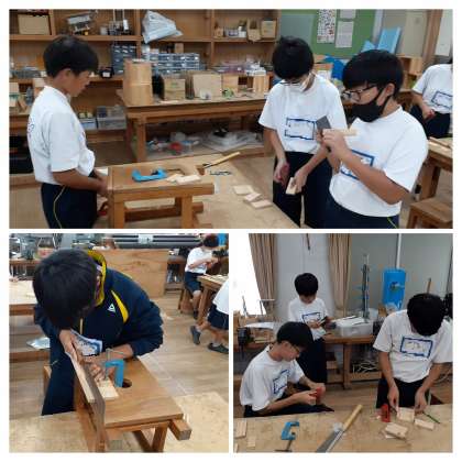 2回目の「のこぎり」による木材の切断です。前回は、説明の時間があり、1〜2カ所しか切断できませんでしたが、今日は、早速、作業に取り掛かりです。
