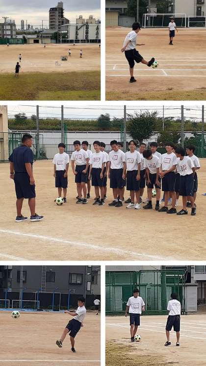 3年生の男子体育の学習の様子です。50mハードル走も終わり、今日からサッカーとなりました。