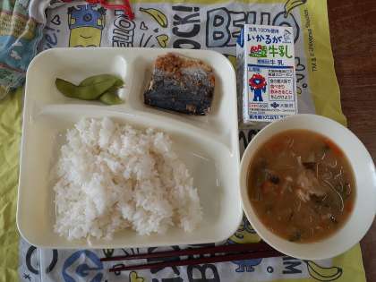 枝豆は最初3〜4つ配膳していたのですが、配缶の中に大量に余り、追加でたくさん改めて配膳しました。生徒たちも大好きなようで大喜びでした。