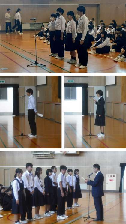 先日の生徒会役員選挙で選出された会長、副会長、執行委員2名の4名が、これから1年間、生徒会役員として活躍してくれることを期待します。
