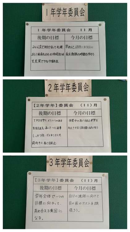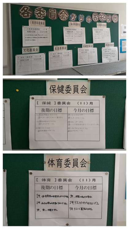 昨日に行われました、後期最初の生徒各委員会の報告が掲示板に貼りだされました。