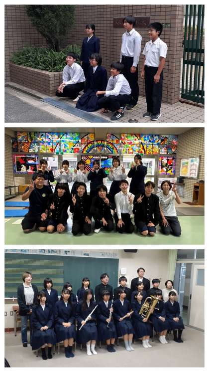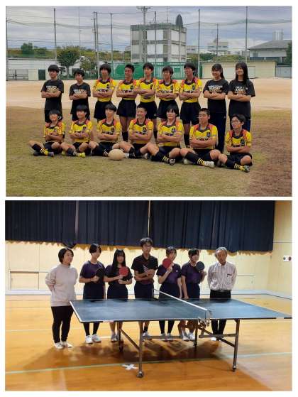 写真は上から、生徒会、歩む会、吹奏楽部、ラグビー部、卓球部、バレーボール部、バスケットボール部です。なお、美術部は後日の撮影です。