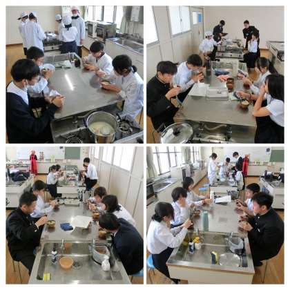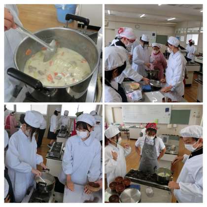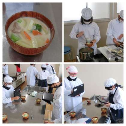 どの班もとってもおいしいシチューに仕上がりました。学習者用端末で映えるように写真の撮影も行い、課題のレポート作成にも使います。