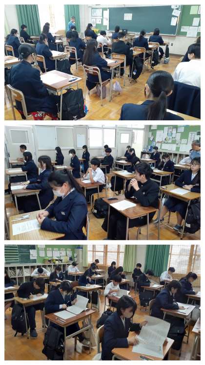 進路選択・決定に向けて、とても大切な実力テストです。参考書やプリントを手に登校する姿も見受けられました。昨日までの進路相談の話を受け、気合が入っていることでしょう。