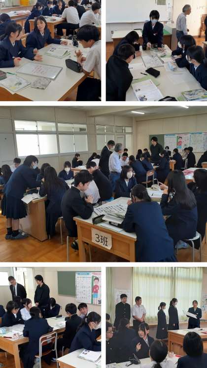生徒たちは、グループで意見交流をしたり、ワークシートに自身の考えをまとめたりしながら、学習を進めていきました。