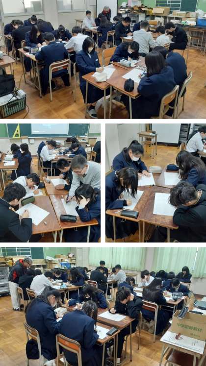 まずはプリントにある15問の問題を10分間、各自で解いていきます。その後、5つに分かれた班で教え合い活動です。自分は理解していても、他者に伝わるように教えることは難しいです。上手に教えることによって、知識も確実に定着していきます。