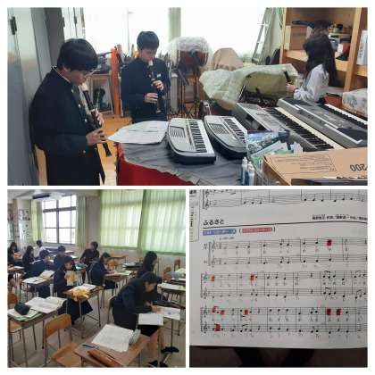 また、音楽室内では、先生から定期テストに向けた確認プリントが配られ、これまでの学習内容の復習も並行して行われていました。