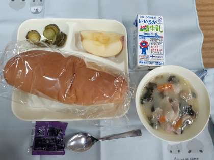 鶏肉ときのこのシチューは、ワインで下味を付けた鶏肉、事前に乾煎りしたベーコン、人参、玉ねぎを綿実油で炒めた後、じゃがいもを加えて湯がき、柔らかくなったところで、しめじ、エリンギ、マッシュルームのきのこ類を加え、コショウとシチュールーの素で味付けて、しっかりと煮込み、最後にほうれん草が加えられています。寒い日にぴったりのあったかシチューでした。