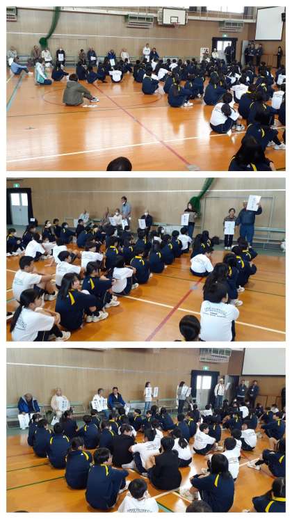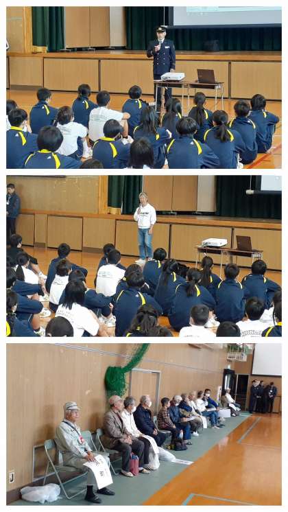 まずは体育館に集合し、東淀川消防署の方より避難訓練の講評です。そして、地域の防災リーダーの方より挨拶をしていただきました。そして、地域の各町会の町会長さんや防災リーダーさんの紹介を行い、地域ごとに生徒は集合し、町会長さんや防災リーダーさんとの顔合わせを行いました。