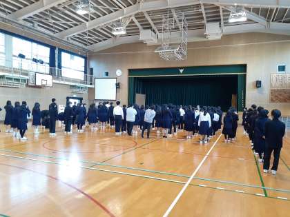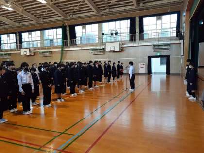 全校朝礼 この時期らしい寒い朝となりました(11月25日)