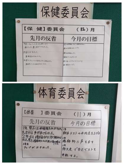 昨日に行われました、生徒各委員会の報告が掲示板に貼り出されていました。