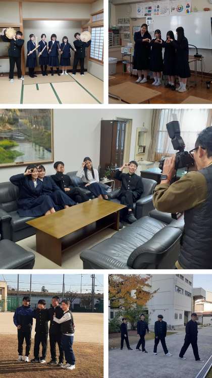 撮影場所は、グループで話し合って決めました。基本的に、屋上などの危険か場所は除いて、校内で自由としました。
