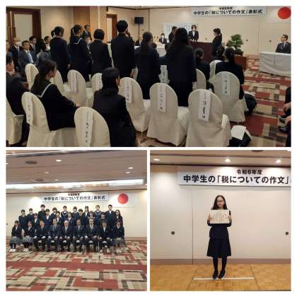 昨日の12月5日の夕方に中学生の「税について作文表彰式」があり、本校の3年生が表彰されました。