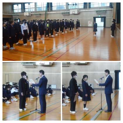 まずは、2名の生徒の賞状の披露と伝達を行いました。