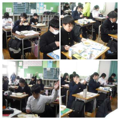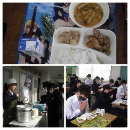 みそ汁は、昆布と削り節の合わせ出汁です。具材は、白菜、人参、しめじ、うす揚げ、青ねぎです。おみそも赤みそと白みその合わせみそでした。今日も具沢山のおみそ汁でした。