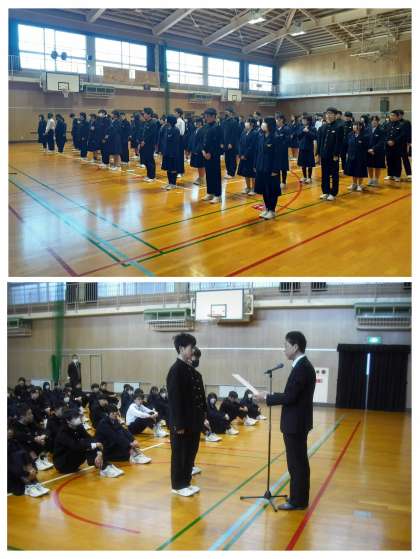 最後に生徒指導担当の先生から、冬休み中の活動・行動について「生活アンケート」についてのお話がありました。
