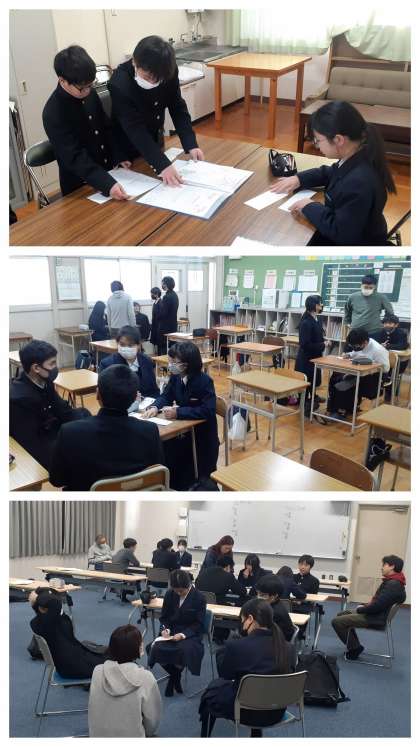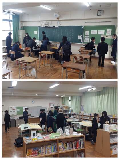 写真は上から、生徒会役員、生活委員会、保健委員会、体育委員会、文化委員会、1年学年委員会、2年学年委員会、3年学年委員会の様子です。