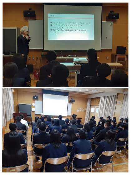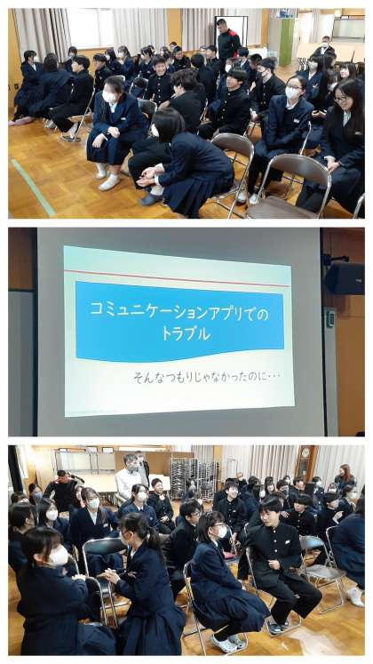 3年生の情報モラル教育の様子です。6時間目にキャリア・ネット企業の「J:COM」より講師をお招きして、多目的室で実施しました。