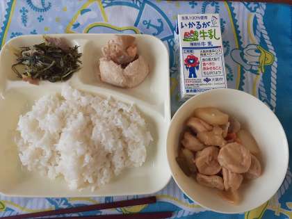 鶏肉のおろしじょう油かけは、料理酒で下味を付けた一口大の鶏肉を焼き物機で焼き上げ、大根おろし、みりん、しょう油を合わせて煮立て、最後にゆずを加えた調味液を配缶時に絡めています。