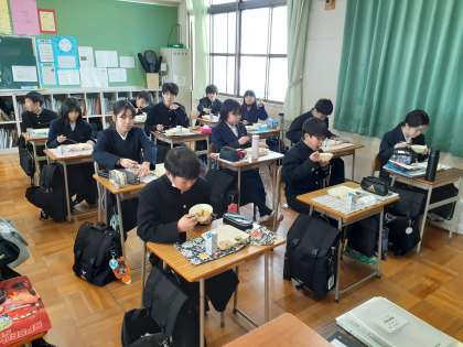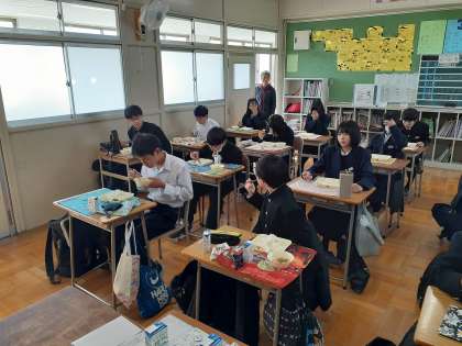一口がんもとじゃがいものみそ煮は、昆布と削り節の合わせ出汁で、一口がんも、じゃがいも、綱こんにゃく、玉ねぎ、人参を煮込み、赤みそ、しょう油、砂糖で味付けをして煮含めて、最後に三度豆が加えられています。出汁の浸み込んだ一口がんもやじゃがいもがおいしかったです。